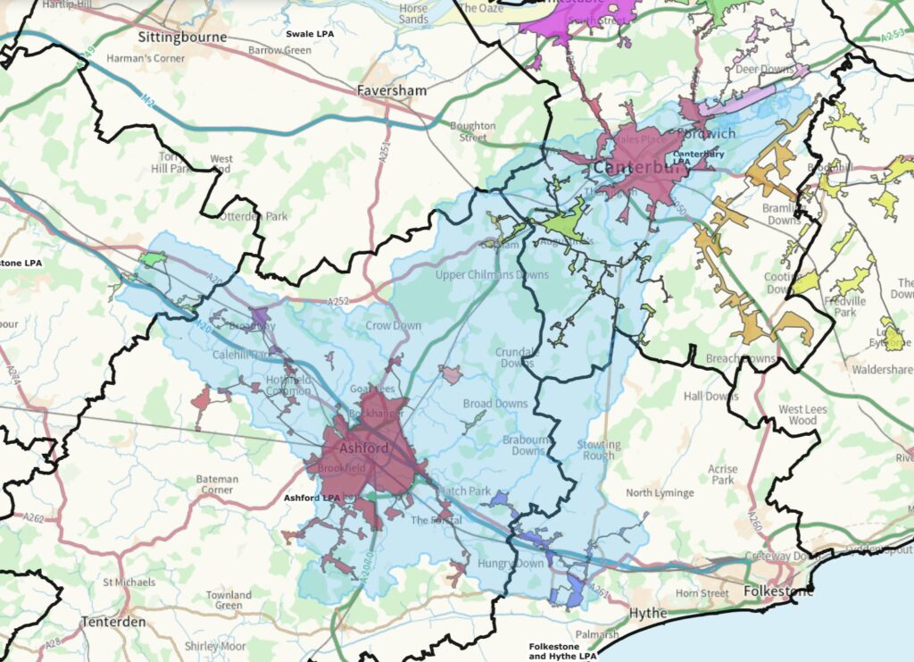 Kent – The blue shaded area on the Kent map is the catchment area – the darker shaded areas within the blue area indicates that you should have mains sewers available to connect to, although this doesn’t necessarily preclude you from the scheme.