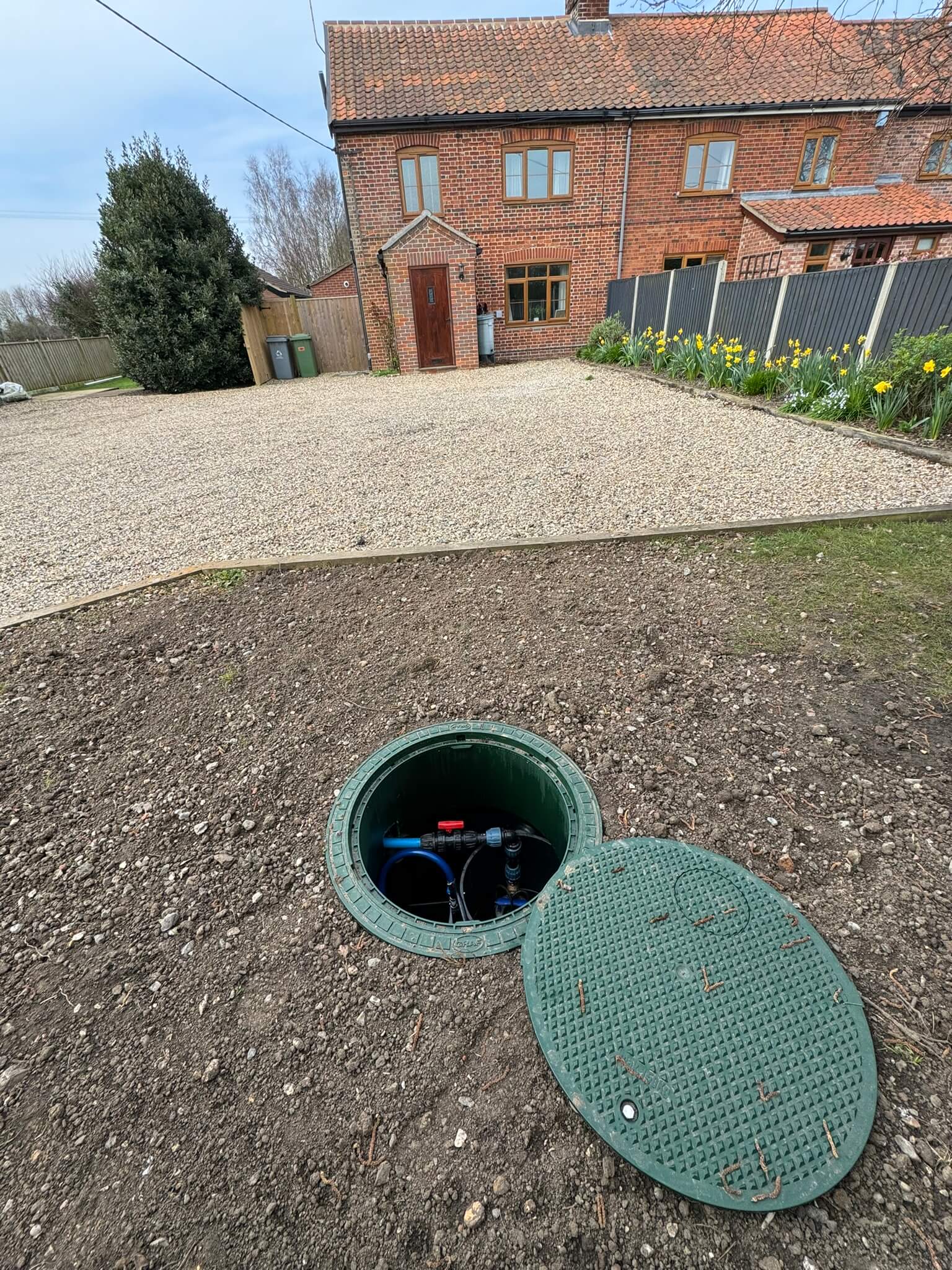We will usually arrange to have your old septic tank emptied to coincide with when we start work. Subject to suitable access to your existing septic tank and assuming it is close to the installation position of the new sewage treatment plant, the old septic tank will be de-commissioned and you will no longer see it once the work is complete, ie the area will just become part of your garden.